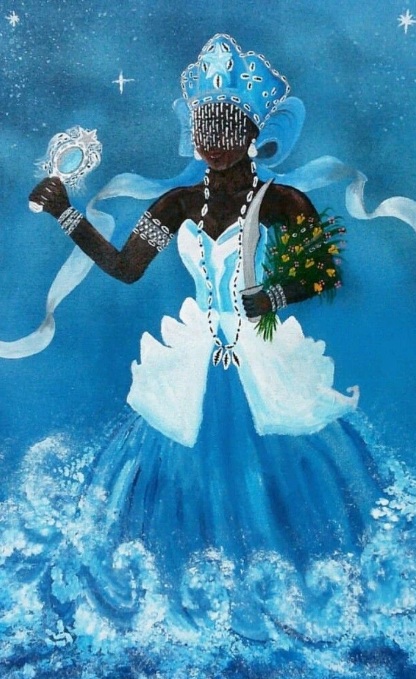 Símbolos / armas: Abebê prateado (leque/espelho), peixe, cavalo-marinho, contas de pérola.